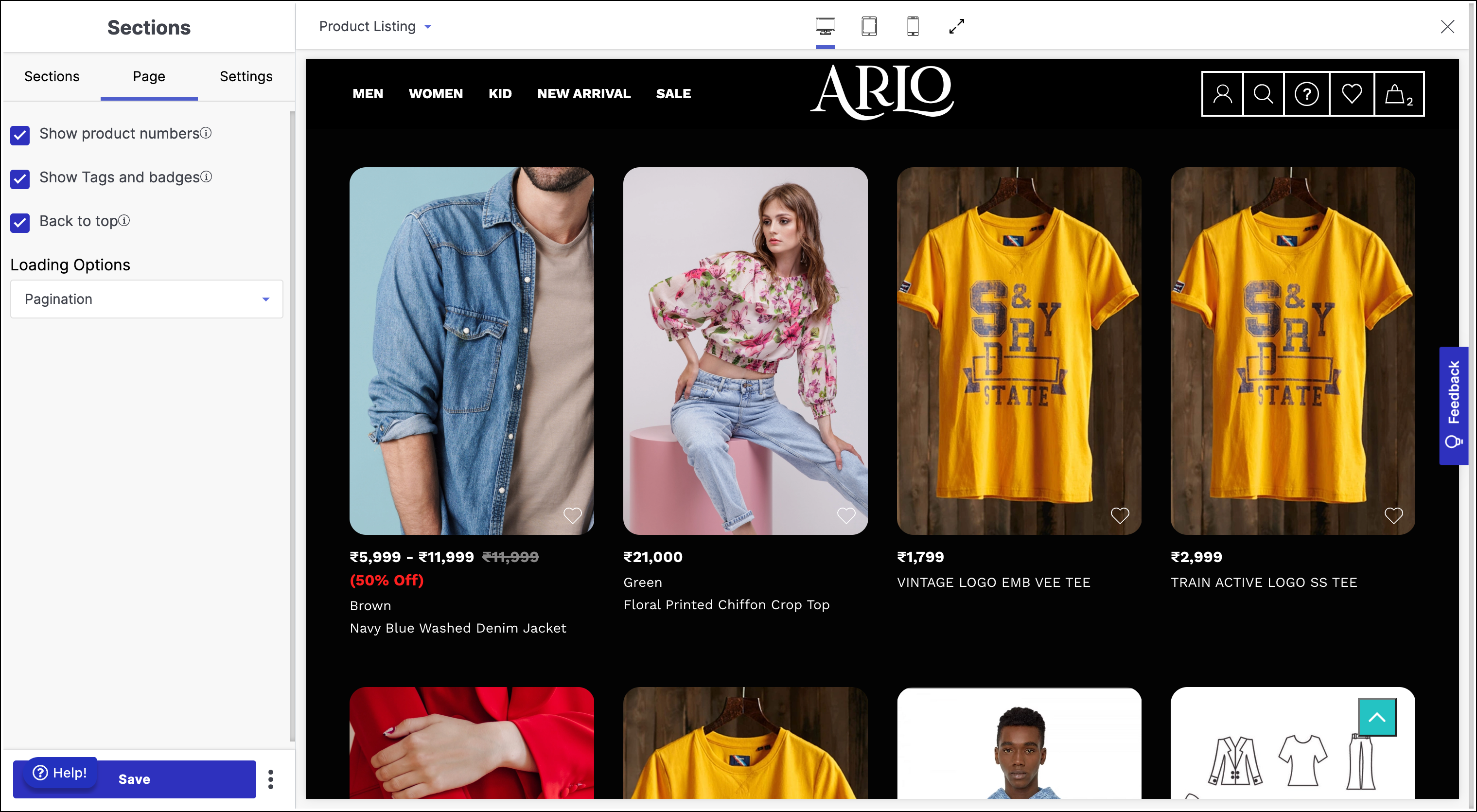 The Arlo Theme provides you with a range of configurable options to enhance the effectiveness of your Product Listing Page:
