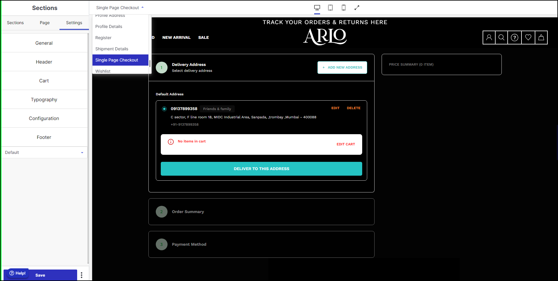 To access and tailor the Single Page Checkout using the Arlo Theme, follow these simple steps:
