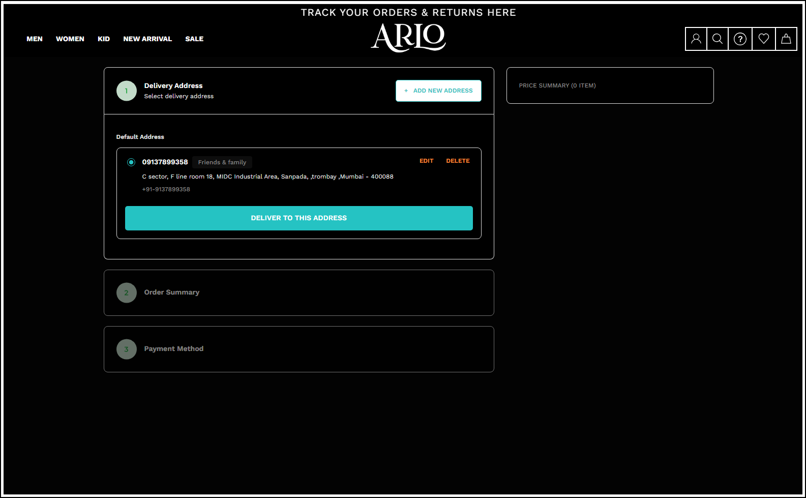 The Single Page Checkout in the Arlo Theme simplifies the journey from cart to completion, offering users a streamlined and efficient process to finalise their purchases. The three-step process encapsulates the essence of convenience: