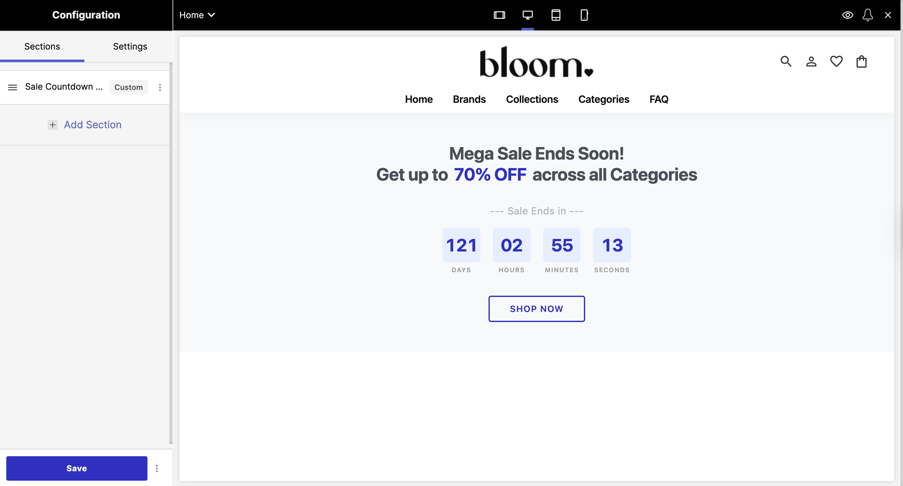 - Bespoke sections for campaigns: Create sections tailored for product launches, promotional campaigns, and merchant-specific needs.
