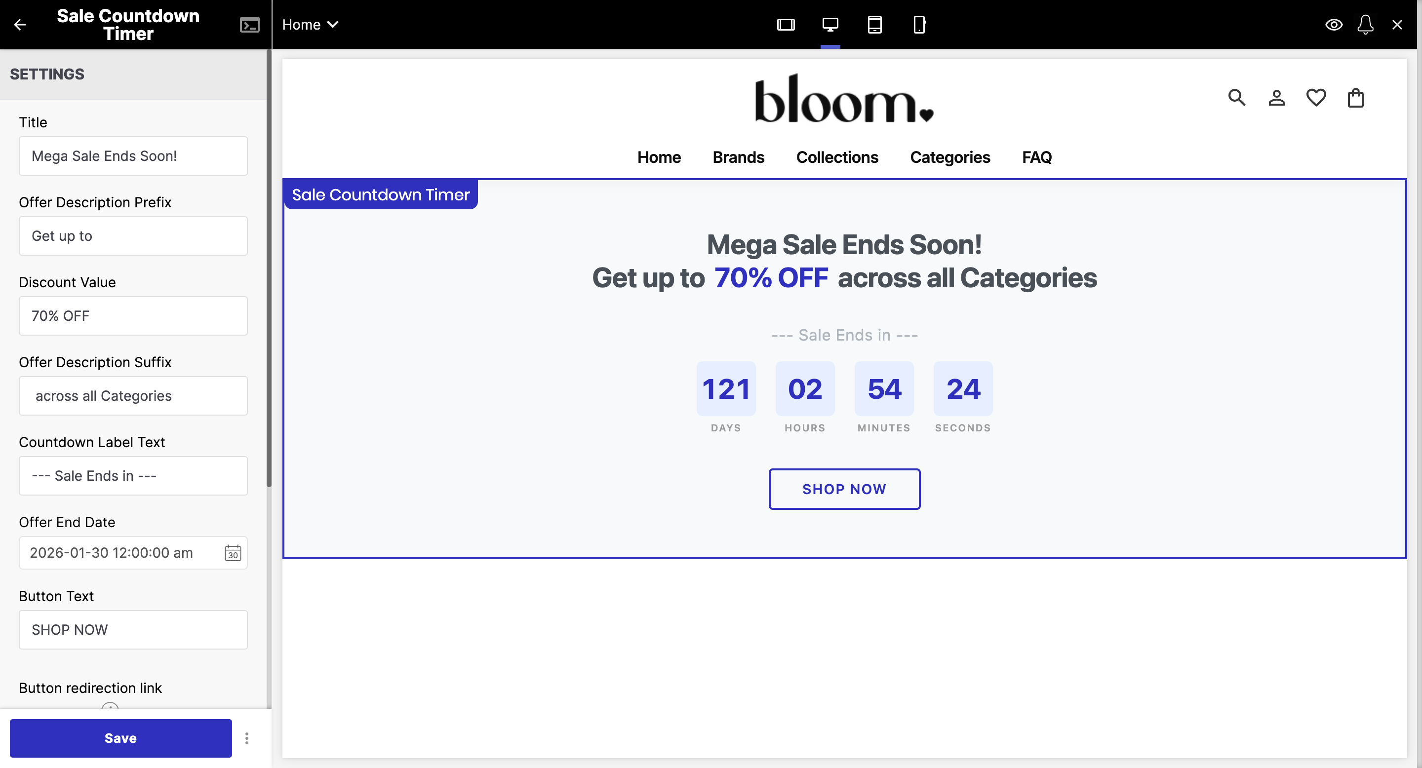 - Usage: With Scheduled Visibility, you can pre-plan the appearance of banners, promotions, or product highlights on specific dates or times. This is especially useful during special events, seasonal sales, or timed campaigns, ensuring that these changes go live automatically without manual intervention.